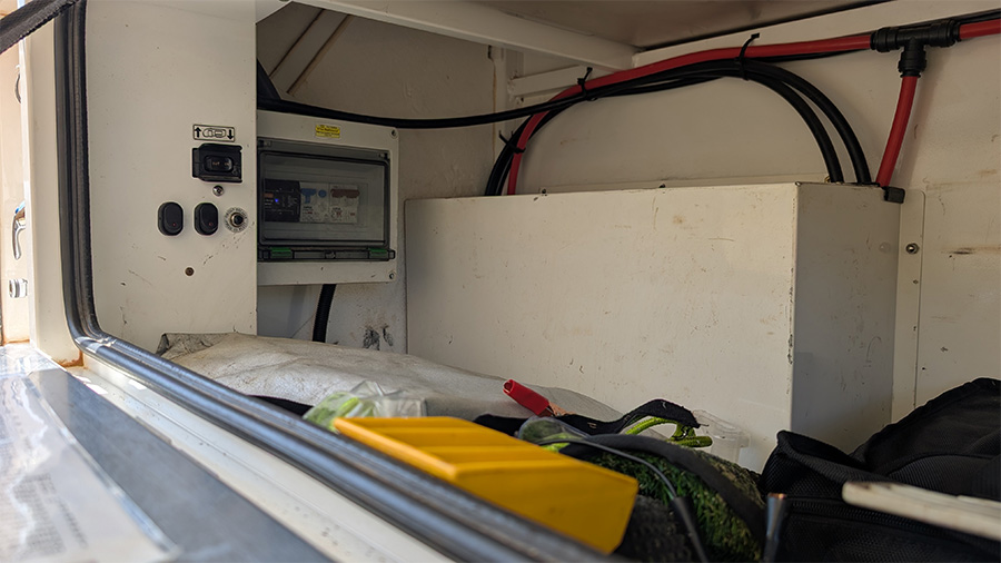 Powering your journey is a 300Ah lithium battery system, paired with a Victron Smart DC charger and a 2000W inverter, offering exceptional energy independence. There’s no solar currently fitted, but it’s prepped for future upgrades. A Projecta DC-DC charger ensures battery longevity, and under-bed LED lighting keeps things bright inside.