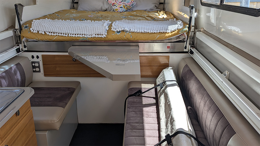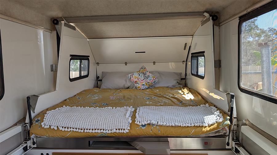 Built on a corrosion-resistant aluminium frame and equipped with coil suspension, electric disc brakes, and independent trailing arms (recently replaced), this camper is made for the tracks less travelled. Whether you’re crossing deserts or exploring coastal bush, this unit delivers stability and confidence.