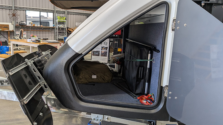 • Australian-made off-road chassis, independent coil suspension, Pedders shocks and 10″ electric brakes.